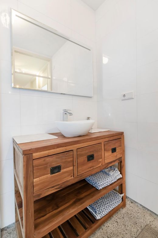 Through shared entrance, the front door on the first floor can be reached by means of a wide accessible staircase. The hall with very spacious storage cupboard/cloakroom and provides access to all rooms. The bright and spacious living room is located at the front of the apartment with access to the balcony and the spacious and well-maintained kitchen. The two quiet and generous bedrooms are located at the rear. The bathroom with walk-in shower and washbasin is located in the middle of the flat, also the separate toilet and laundry room (space for both washing machine and dryer).