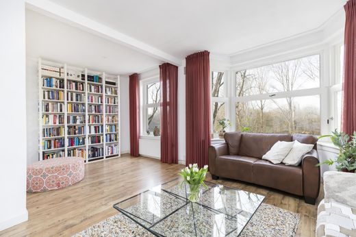 Derde verdieping: Via het ruime trappenhuis is de woning te betreden op de derde verdieping; de centrale hal geeft toegang tot alle vertrekken op deze verdieping. Aan de voorkant is de ruime woonkamer gelegen. Deze heeft een charmante erker met prachtig uitzicht over het water, en dankzij de ruime afmetingen is er voldoende ruimte voor een eet- en een zitgedeelte.