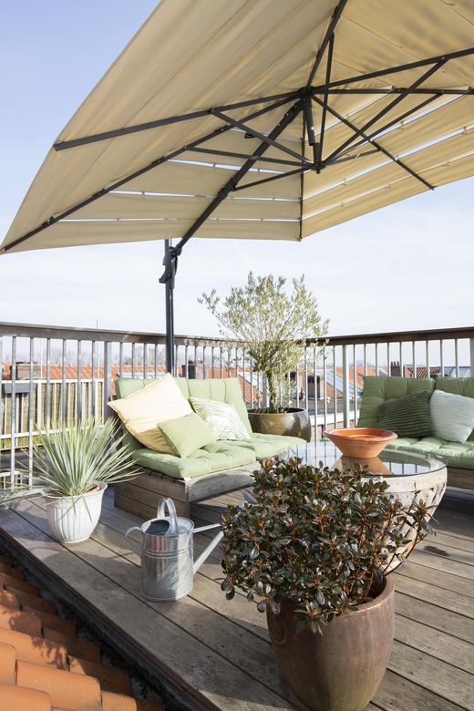 Op de vijfde verdieping is er nog een prachtige ruime (slaap)kamer, met vaste spiegelkastenwand en aansluitend op dit niveau een schitterend zonnig dakterras.